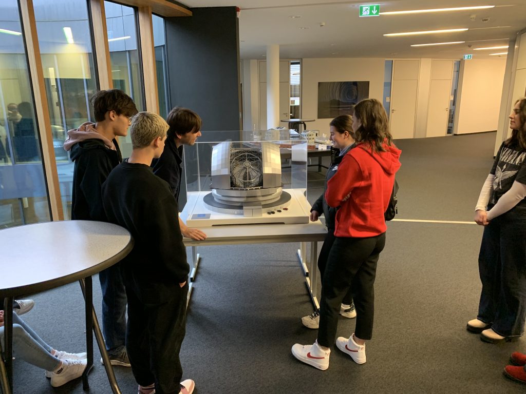 Exkursion zum Forschungscampus Garching. Die 8d bekam am 02.Februar bei einer Führung durch das EXO-Hauptquartier spannende Einblicke zu den neuesten Entwicklungen der Astronomie und den Projekten der Europäischen Südsternwarte. Besonders beeindruckend waren die Details zum Bau des Extremely Large Telescope in Chile mit einem Spiegeldurchmesser von 39 Metern. Den Abschluss bildete eine Vorführung im Planetarium mit dem Schwerpunktthema der dunklen Materie. Die 8cn besuchte die Forschungs-Neutronenquelle Heinz Maier-Leibnitz. Bei einer umfangreichen Führung gab es viele spannende Einblicke zum Reaktor und zur Nutzung der Neutronen für die unterschiedlichsten Zwecke.